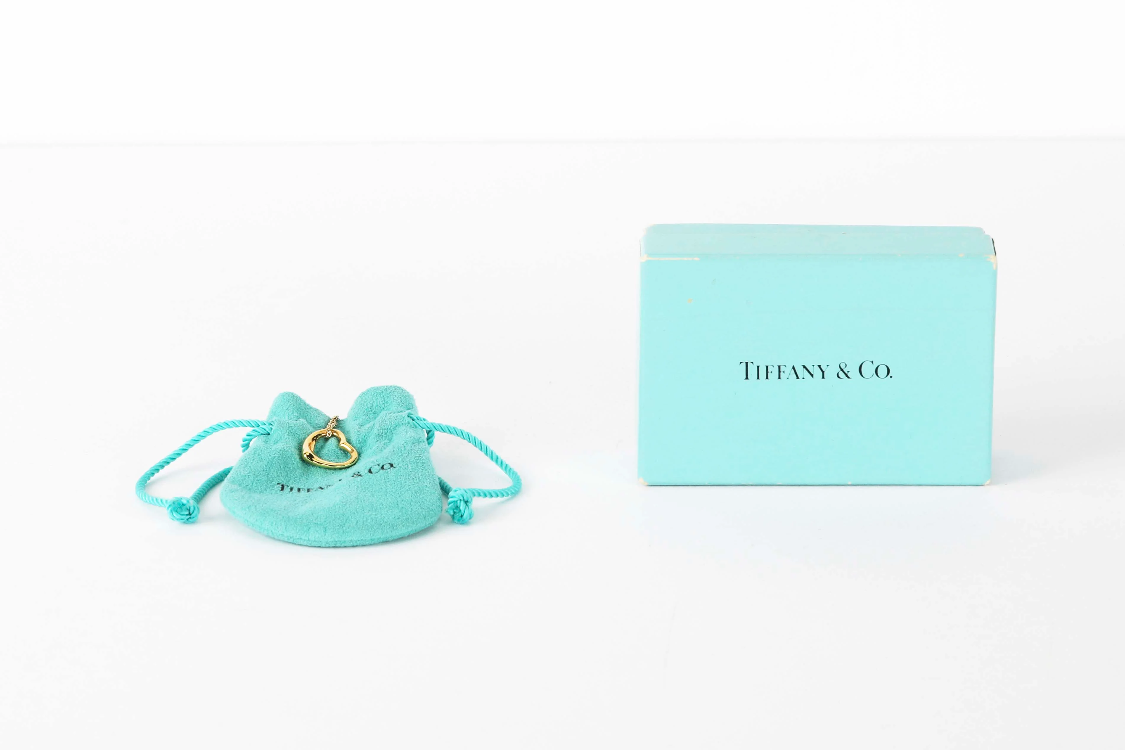 This particular Tiffany necklace is executed in 18ct. Yellow Gold and comes with the Open Heart pendant with a size of 15mm. The necklace comes with the original Tiffany Box.